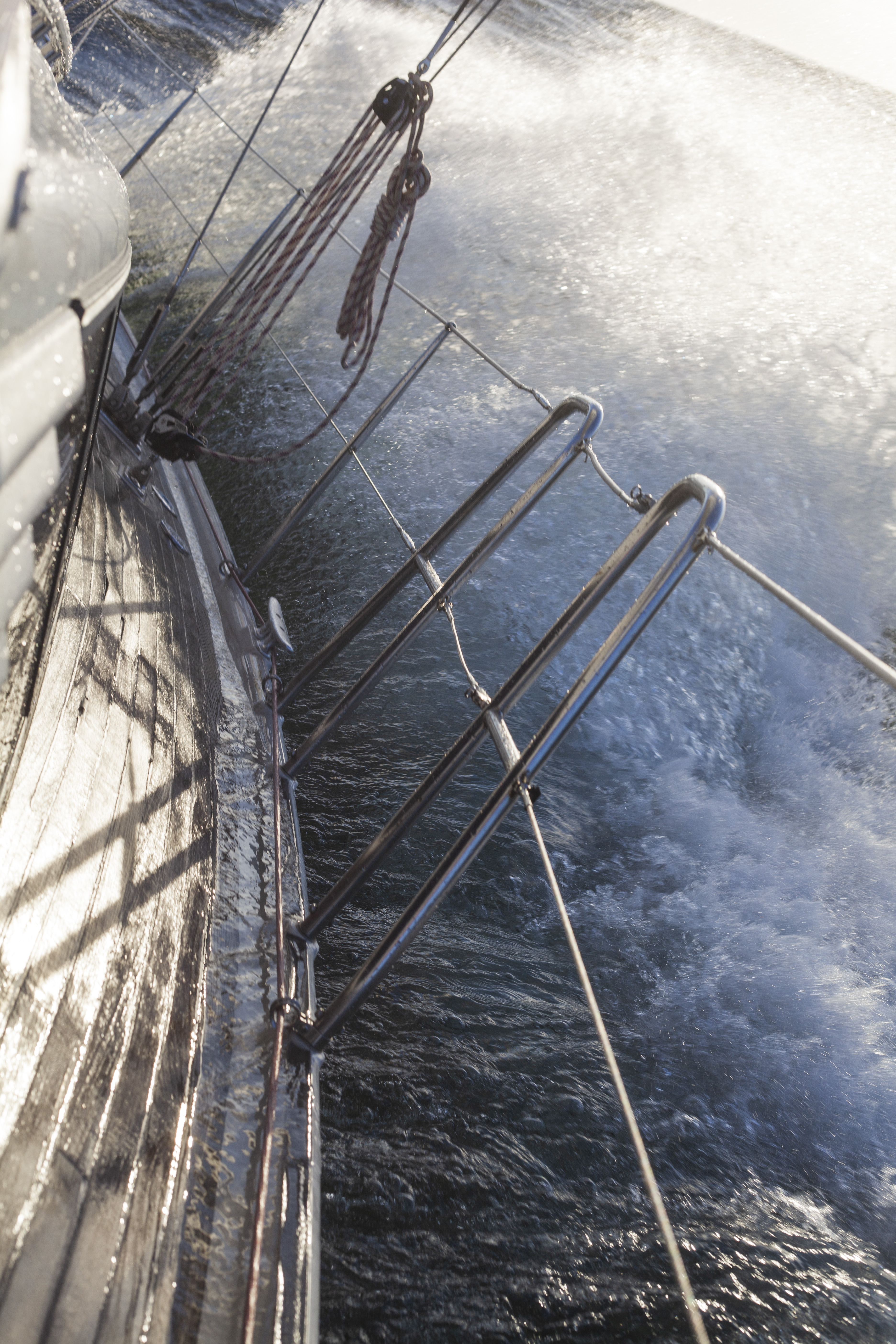 Nousimme vasten tuulta kiertääksemme Gotlannin vaaralliset eteläkarikot. Yö tummeni ja aallot pyyhkivät koko veneen mittaa. Luoveihin kului viisi tuntia, ja väsymys oli ilmiselvää. Olen ottanut tavaksi puhua tekemiseni etukäteen, kun olen liiaksi väsynyt. ”Kiristän etupurjeen skuuttia kaksi kierrosta”. Näin keskittymiseni pysyy skarppina, tämän olen huomannut. Suuntana oli nyt 50 mailin päässä oleva Öölanti, jonne laskettelimme kakkosreivillä. Lepäsimme Öölannin itäpuolella päivän ankkurissa. Nautimme espanjalaisen iltapäiväaamiaisen, ja otimme suihkun takakannella.