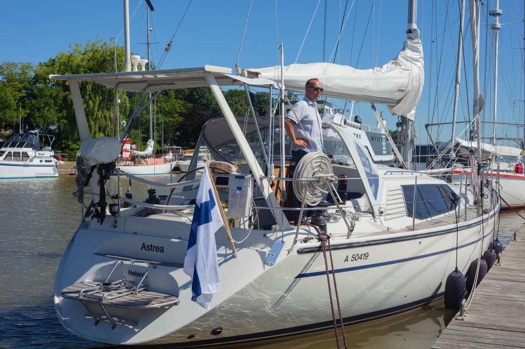Lähdön hetki koitti maanantaina 11.6.2018. Purjehtijat paiskasivat kättä kotilaiturissa. VVK:n satamakapteeni Tom Backas, sihteeri Pekka Tuominen ja rahastohoitaja Timo Saksala irrottivat köydet kesäkuun yhdestoista klo 12.00. Jätin jo aamuvarhain hyvästelyt Eiralle. Pojille olin sanonut etämoikat jo aikaisemmin. Lähtöhetkellä vain Krista-tytär ehti halauksin toivottaa hyvää matkaa. Lipputervehdys, ja niin Astrea lipui aurinkoisessa juhlasäässä näkymättömiin. Kommodorimme Samuli Martti soitti myöhemmin Itämerelle, ja toivotti turvallista matkaa.