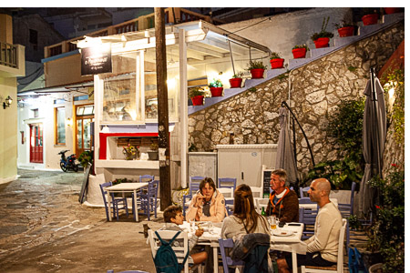 Kuvat: Vain harva taverna tarjosi dinneriä enää lokakuun loppupuolella Ioulidassa. Kausi päättyy myös Kreikassa ja selvemmin Kykladien saaristossa. Monet hotelli- ja ravintola-alan työntekijät palaavat kotiseudulleen ja Ateenaan. Saimme kuitenkin Jussi Pakkasvirran kanssa nauttia vielä herkullisista merenantimista purjehdusseurueen kanssa.