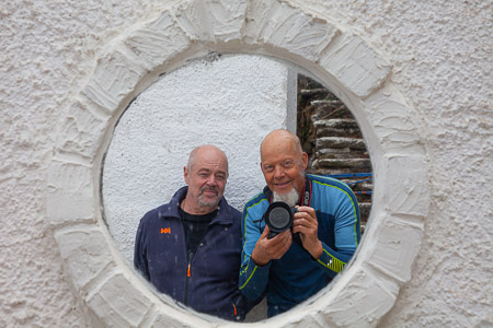 Kuva: Seilorit Jussi ja Ari kuvastimessa Ioulidan kävelykadulla lokakuussa 2021. Olen yhdistänyt kokoelmaan myös tämän muistikuvan edelliseltä vuodelta, jolloin minulla oli ilo vierailla Jussi Pakkasvirran kanssa samaisella saarella. Ajoimme saaren ympäri, ja kierroksesta lisää tuonnempana…