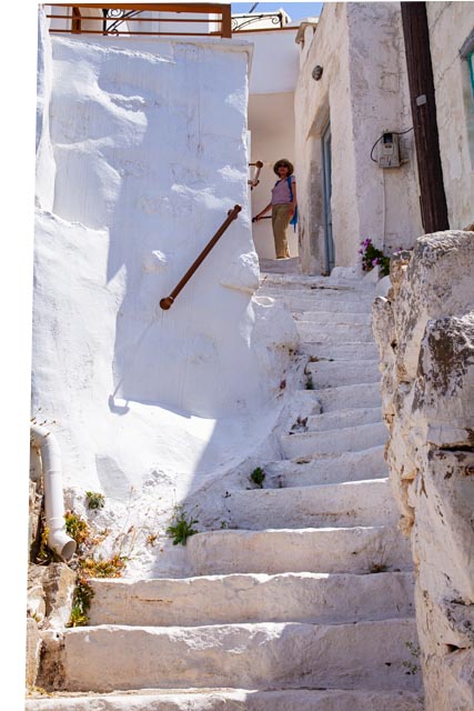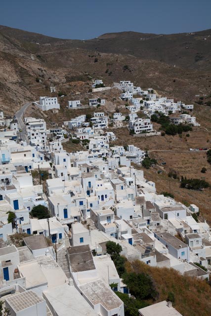 Katse kohdistuu väistämättä ylärinteessä valkoiseen Ano Choraan eli kyläkaupunkiin, joka houkuttelee kävelijää. Chora on sopivasti 200 metrin korkeudessa, ja matkaa sinne on noin nelisen kilometriä, kun nousee kiemurtelevia kävelypolkuja. Kävellessä moni meistä miettii, minkälaista on elämä ollut silloin, kun vain paikalliset serifoslaiset asuttivat kaupunkia.