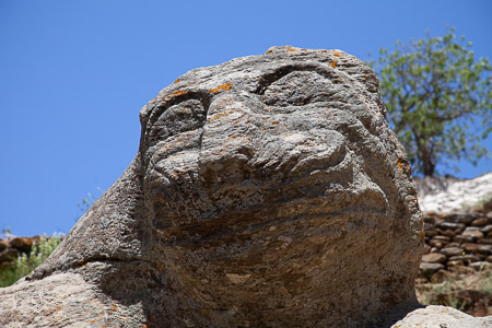 Kuva: Kävimme Helinän ja Riston kanssa retkellä Ioulidassa ja muinaisen Otzias – leijonan reviirillä Ioulidan kallioilla. Ystävällisen oloinen, hymyilevä Otzias makaa sijoillaan kallionleikkauksessa. Leijona ikään kuin vartioi Ioulidaan johtavaa polkua ja nauttii silminnähden turistien ihmettelystä. Kukaan ei vaan tutkimuksista huolimatta tunnu tietävän leijonan alkuperää näin eksoottisessa ympäristössä.