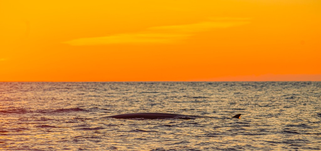 Lahtivalaan kaunis kohtaaminen auringon laskiessa.