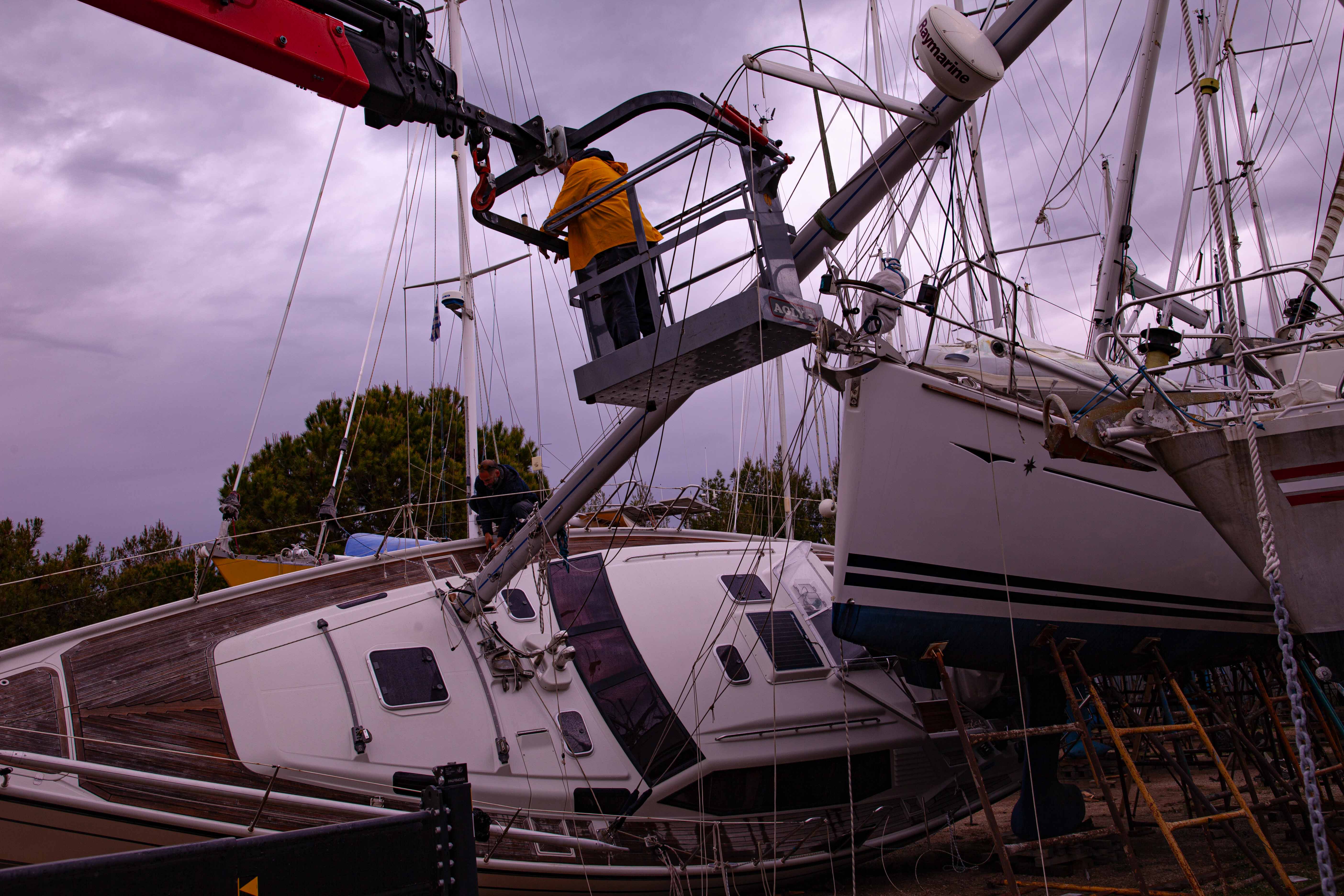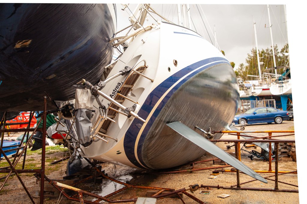 Oli varhainen huhtikuun aamu telakalla, kun tunsin Astreassa outoa värinää ja liikettä sateen piestessä ikkunat sumeaksi. Pudotin tuoremehun lavuaariin ja ryntäsin ulos. Istumakaukalossa kuulin jo yhden telineen sortuvan. Yritin nostaa telineen jalkaa pystyyn tuulenpuolella. Mutta samalla huomasin koko veneen kallistuvan ensin hitaasti ja sitten kiihtyvällä voimalla. Hyppäsin sivuun, ja valtava räminä sammui tuulen huminaan. S/y Astrea (Dehler 41 DS) oli kaatunut kreikkalaisella pientelakalla keväällä 2024.Ikään kuin filmi katkesi, ja näin traumaattisen videopätkän pyörivän uudestaan ja uudestaan. Kysyin itseltäni, ”tähänkö tämä ilo loppui”, ”tähänkö tämä loppui”.