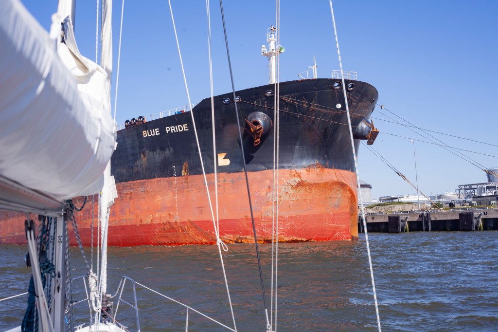 Saavuimme Rotterdamin edustalle 46 purjehdustunnin jälkeen Cuxhavenista iltapäivällä. Rotterdamin satama on Euroopan vilkkaimmin liikennöity satama. Tai pikemminkin voisi puhua satamaketjusta, joka ulottuu Reinin Niuewe Maas suuhaarassa 40 km matkalle, ja se käsittää 64 kilometriä laitureita. Vuosaaren sataman kokoisia satamalaitureita ja –altaita on kymmenittäin. Satama-alueelle sijoittuu paljon kemian ja energiateollisuuden tuotantoa. Siellä toimii esimerkiksi viisi öljynjalostamoa, kuusi biopolttoaineen tuotantolaitosta, viisi kasvisöljyjalostamoa, neljä kaasuvoimalaitosta, kolme hiiltä ja biopolttoainetta käyttämää voimalaa, 70 tuulivoimalaa, kuusi höyry- ja sähkövoimalaa sekä yksi jätehuoltolaitos.[1]