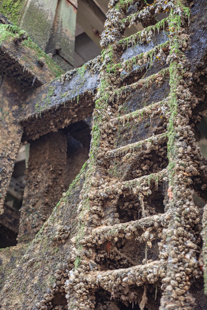 Brunsbuttelin sulutus meni helposti pienveneiden kaistalla. Merivirrat tarttuivat Astrea keulaan heti, kun ajoimme ulos jokisuistoon. Onneksi vielä oli kolmisen tuntia myötävirtaa jäljellä. Saimme virrasta tukea puolentoista solmun verran. Mutta tilanne muuttui ennen Cuxhavenin vierasvenesatamaa. Pohjanmerellä tuuli voimistui ja virta oli jo muuttunut vastaiseksi. Kolmella viimeisellä maililla ei enää Astrea normaalit 2000-konekierrosta riittäneet. Kierroksia piti nostaa, jotta ilta ei ehtisi rantautumisen edelle. Sataman suulla oli kuin virtaava joki, jossa vauhti putosi pariin solmuun. Sisään piti ajaa ensin ylös tuuleen ja käännöksen jälkeen palata takaisin vapaaseen pistolaituriin. Muuten tuuli olisi painanut Astrean naapuriveneen kylkeen. (Veneiden metrilukemat laitureiden päässä.)