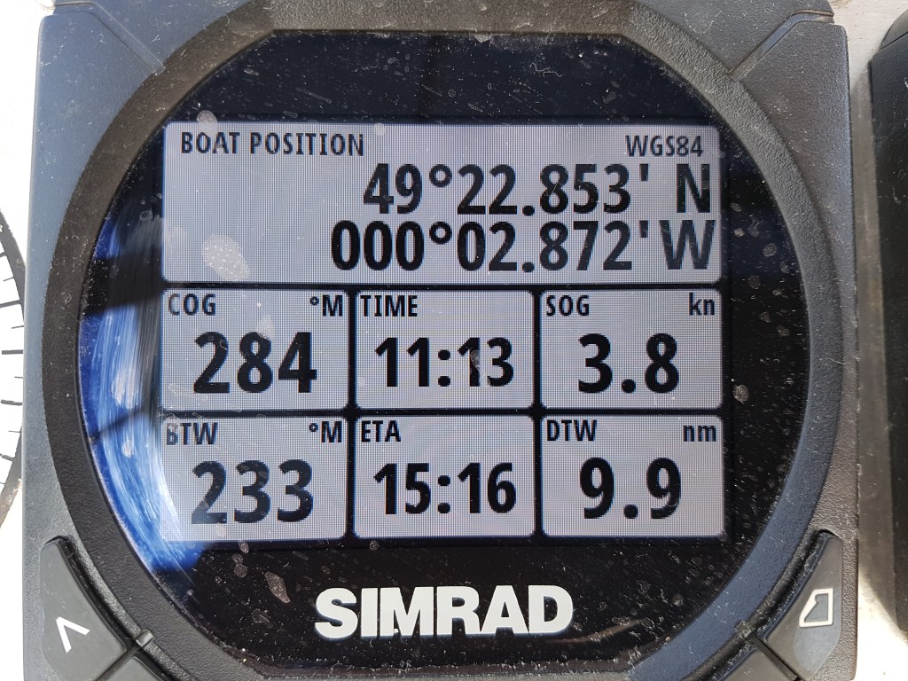 Päätimme ajaa kanaalin laivaväylän pohjoispuolella, koska eteläpuolella saa yöaikaan väistellä kalastustroolareita. Valinta oli hyvä senkin johdosta, että saimme enemmän aaltoja pyöristävää vettä allemme. Silti laivoja kyllä riitti satamien, kuten xx risteyskohdissa. Sovimme vuorot niin, että se kumpi ensin saa unenpäästä kiinni, aloittaa lepovuoron. Jaakko oli yleensä nukkumisessa parempi. Minulle jäi tavallisesti aina pimein vuoro. Aamun sarastaessa meren henkäys moinasi. Hyvä jos kolmessa neljässä metrissä ajettiin. Mutta väliäkö sillä, kun kurssi kääntyi sivumyötäiseksi.